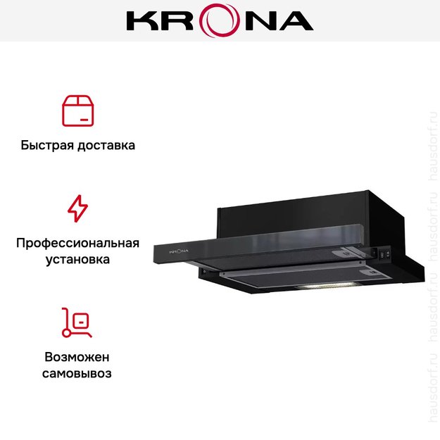 Встраиваемая вытяжка — выбор тех, кто хочет максимально задекорировать технику, или владельцев маленькой кухни. Тип встраивания: в шкаф. Обратите внимание на цветовые сочетания модели KRONA KAMILLA 500 AIR 1B, чтобы органично вписать ее в свою квартиру. Оттенок корпуса: черный. Благодаря лампочкам, которые расположены на нем, можно освещать плиту и столешницу рядом, чтобы готовить было еще проще и приятнее. Фишка этой техники — выдвижная панель.