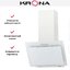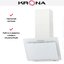 Белая наклонная вытяжка — простое изящное решение для вашей кухни. Благодаря фронтальной панели, расположенной под углом, модель имеет небольшую глубину и хорошо вписывается в ряд кухонных настенных шкафов, не выдаваясь вперед.