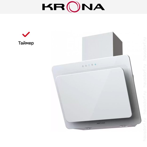 Данная вытяжка крепится на стену и имеет наклонную фронтальную панель, что придает изюминку дизайну и позволяет сохранить свободное рабочее пространство внизу. Обратите внимание на цветовые сочетания модели KRONA Liva 500 white S, чтобы органично вписать ее в свою квартиру. Оттенок корпуса: белый.