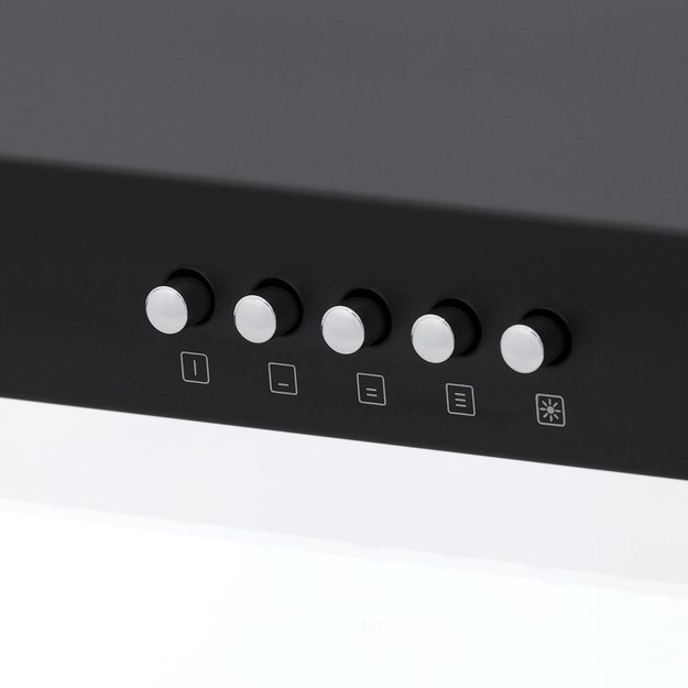 Встраиваемые и простые настенные модели, как правило, оснащаются боковой панелью управления, состоящей из нескольких кнопок. Их количество зависит от числа скоростей, наличия интенсивного режима и встроенного освещения. Боковое расположение панели управления делает вытяжку еще более незаметной.