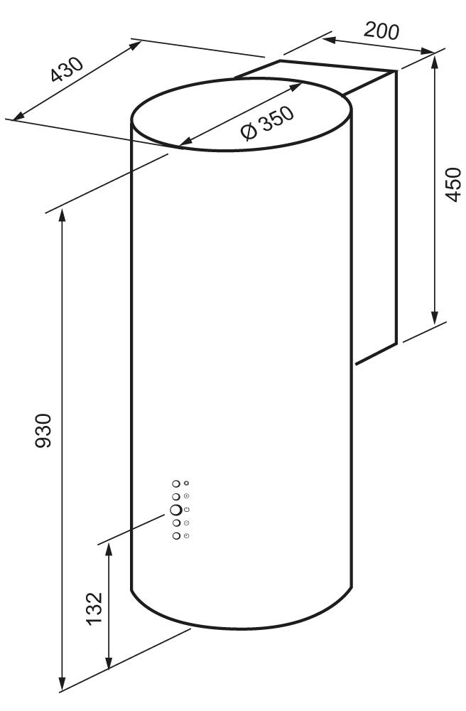 Вытяжка этого типа крепится на стену и может иметь разную форму — прямоугольную (объемную и плоскую), цилиндрическую, конусообразную и нестандартную дизайнерскую. Воздух обычно выводится вверх, для маскировки воздуховода используется декоративный короб. Настенное крепление — самый распространенный и простой способ установки.