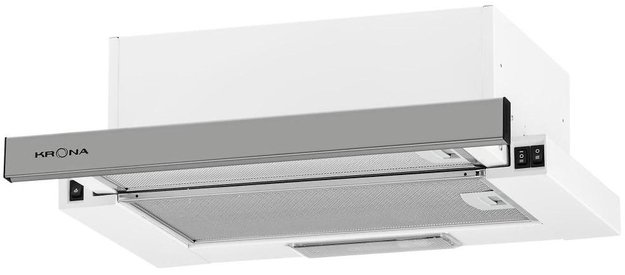 Встраиваемая вытяжка — выбор тех, кто хочет максимально задекорировать технику, или владельцев маленькой кухни. Тип встраивания: в шкаф. Обратите внимание на цветовые сочетания модели KRONA VITTORIA 500 inox PB, чтобы органично вписать ее в свою квартиру. Оттенок корпуса: нержавеющая сталь. Благодаря лампочкам, которые расположены на нем, можно освещать плиту и столешницу рядом, чтобы готовить было еще проще и приятнее. Фишка этой техники — выдвижная панель.