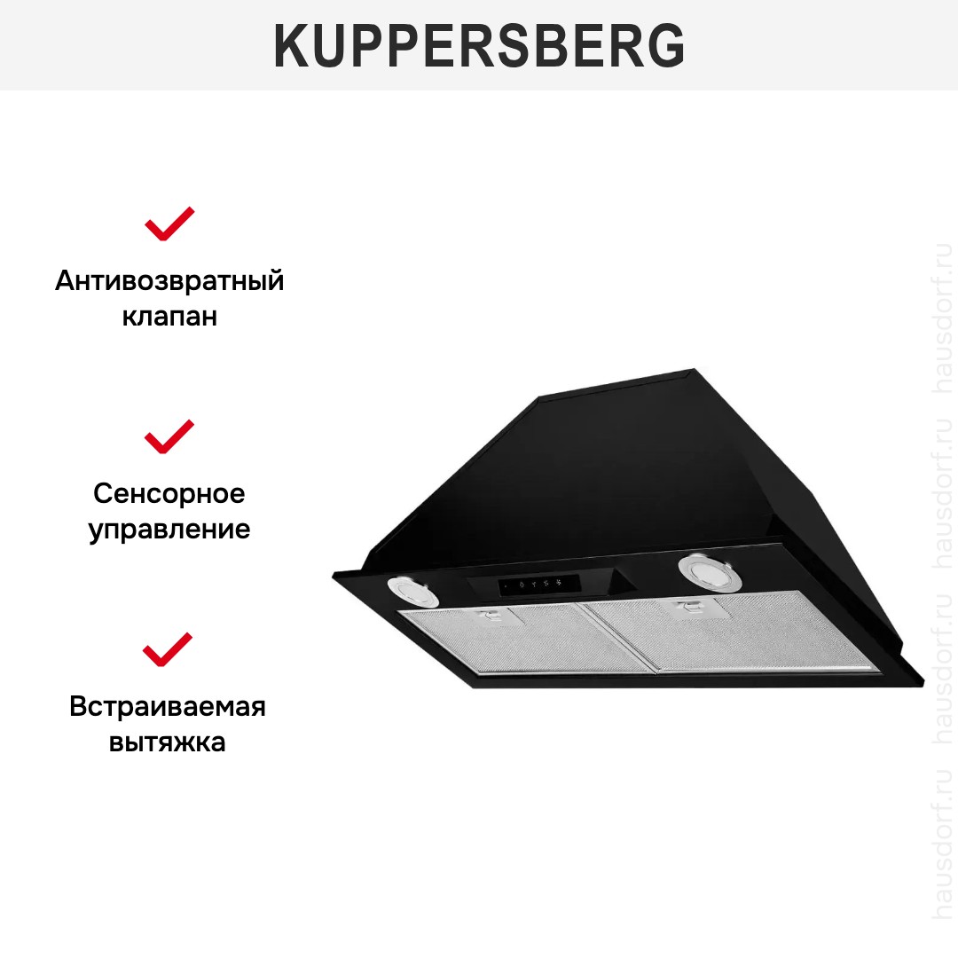 Встраиваемая вытяжка — выбор тех, кто хочет максимально задекорировать технику, или владельцев маленькой кухни. Тип встраивания: в шкаф. Обратите внимание на цветовые сочетания модели Kuppersberg INLINEA 72 Black, чтобы органично вписать ее в свою квартиру. Оттенок корпуса: черный. Благодаря лампочкам, которые расположены на нем, можно освещать плиту и столешницу рядом, чтобы готовить было еще проще и приятнее.