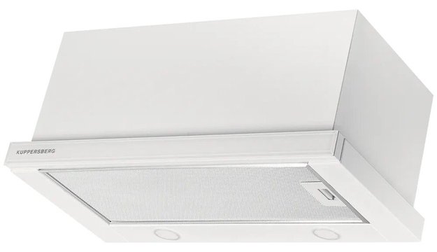 Встраиваемая вытяжка — выбор тех, кто хочет максимально задекорировать технику, или владельцев маленькой кухни. Тип встраивания: в шкаф. Обратите внимание на цветовые сочетания модели Kuppersberg SLIMTURBO 60 GW, чтобы органично вписать ее в свою квартиру. Оттенок корпуса: белый. Благодаря лампочкам, которые расположены на нем, можно освещать плиту и столешницу рядом, чтобы готовить было еще проще и приятнее. Фишка этой техники — выдвижная панель.