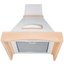 Особенно разнообразен ассортимент классических вытяжек с окантовкой из натурального дерева. Корпус таких моделей выполняется в спокойном белом или бежевом цвете, хорошо сочетающемся с оттенками натурального дерева — мореного дуба, бука, вишни или ореха. Нередко для окантовки используется окрашенное дерево в тон с цветом купола: особенно популярны оттенки ванили, бежевый и кремовый. Иногда дерево специально оставляют неокрашенным, чтобы пользователь мог подобрать оттенок самостоятельно.