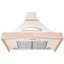 Особенно разнообразен ассортимент классических вытяжек с окантовкой из натурального дерева. Корпус таких моделей выполняется в спокойном белом или бежевом цвете, хорошо сочетающемся с оттенками натурального дерева — мореного дуба, бука, вишни или ореха. Нередко для окантовки используется окрашенное дерево в тон с цветом купола: особенно популярны оттенки ванили, бежевый и кремовый. Иногда дерево специально оставляют неокрашенным, чтобы пользователь мог подобрать оттенок самостоятельно.