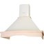 Еще один универсальный цвет — белый, он особенно хорошо подходит для небольших кухонь, так как зрительно способен расширить пространство. На белом фона меньше заметны капли воды и даже частицы жира. В классическом или античном белом выполняются купольные и каминные вытяжки, угловые и встраиваемые модели. Светлые кремовые тона, оттенок слоновой кости — наиболее распространенный вариант для больших вытяжек с окантовкой из натурального дерева.