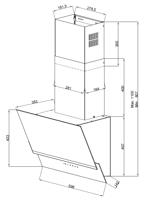 У многих встраиваемых моделей глубина может регулироваться, а рабочая всасывающая поверхность — увеличиваться благодаря выдвижному козырьку, но габариты корпуса такой вытяжки должны соответствовать размерам подвесного шкафа. Выбирать основные размеры вытяжки с соблюдением всех требований эффективности и безопасности работы следует также не в ущерб общему дизайну помещения.