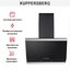Данная вытяжка крепится на стену и имеет наклонную фронтальную панель, что придает изюминку дизайну и позволяет сохранить свободное рабочее пространство внизу. Обратите внимание на цветовые сочетания модели Kuppersberg F 603 BX, чтобы органично вписать ее в свою квартиру. Оттенок корпуса: черный/нержавеющая сталь. Благодаря лампочкам, которые расположены на нем, можно освещать плиту и столешницу рядом, чтобы готовить было еще проще и приятнее.