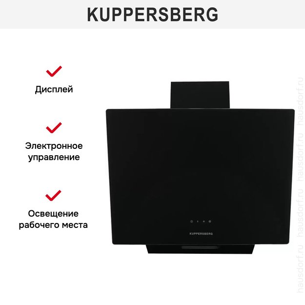 Данная вытяжка крепится на стену и имеет наклонную фронтальную панель, что придает изюминку дизайну и позволяет сохранить свободное рабочее пространство внизу. Обратите внимание на цветовые сочетания модели Kuppersberg F 605 B, чтобы органично вписать ее в свою квартиру. Оттенок корпуса: черный. Благодаря лампочкам, которые расположены на нем, можно освещать плиту и столешницу рядом, чтобы готовить было еще проще и приятнее.
