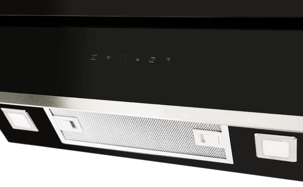 Встраиваемые и простые настенные модели, как правило, оснащаются боковой панелью управления, состоящей из нескольких кнопок. Их количество зависит от числа скоростей, наличия интенсивного режима и встроенного освещения. Боковое расположение панели управления делает вытяжку еще более незаметной.