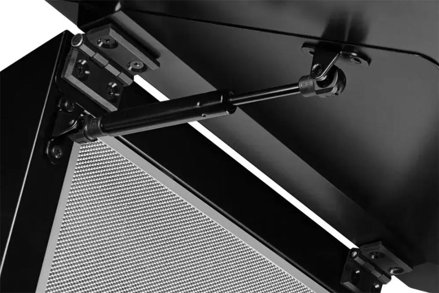 Угловые вытяжки — разновидность купольных. В соответствии со своим названием эти устройства крепятся над угловыми варочными поверхностями, удачно занимая свободное место в углу помещения.