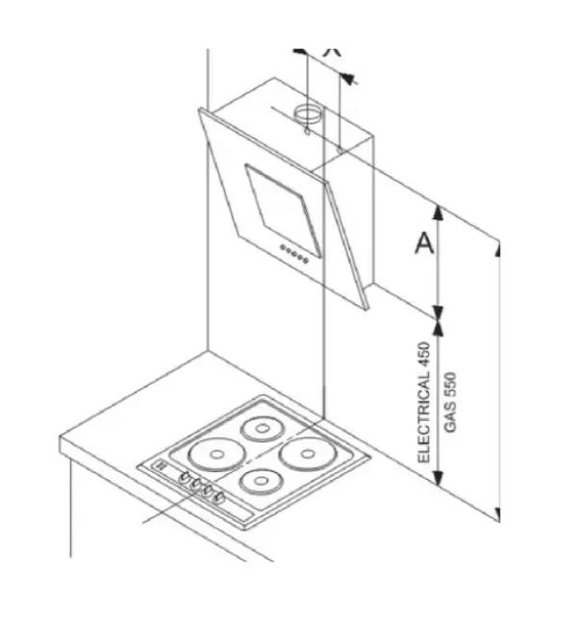 Стандартное расстояние между встраиваемыми или купольными вытяжками и варочной поверхностью должно составлять 65–75 см для электрических и индукционных варочных панелей, и 75–85 см для газовых плит. Для популярных наклонных моделей расстояние от их нижнего края до варочной поверхности может быть уменьшено до 35–45 см для электрических и индукционных устройств и до 55–65 см для газовых.