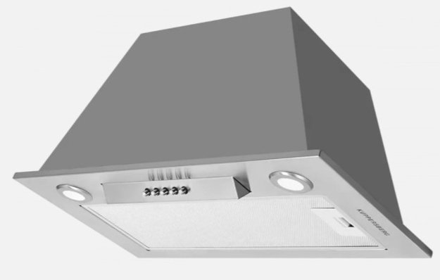 Встраивание вытяжки в шкаф — оптимальный вариант для малогабаритной кухни. Такие модели просты в установке, недороги, практически скрыты от глаз, их не нужно подбирать по внешнему виду, а также чем-то маскировать воздуховод. Уровень шума также снижается благодаря дополнительной звукоизоляции. Встроенные в шкаф модели могут дополняться выдвижной панелью, которая увеличивает площадь забора загрязненного воздуха. Иногда к встраиваемым относят также вытяжки, которые монтируются под подвесной шкаф, хотя их корпус остается на виду.