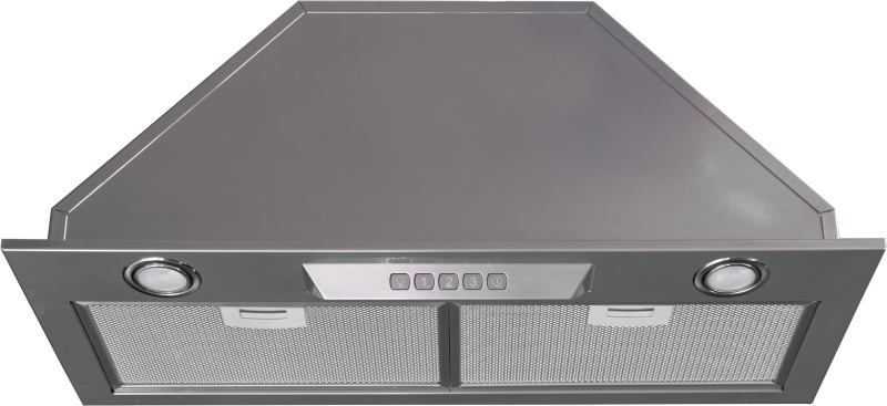Встраивание вытяжки в шкаф — оптимальный вариант для малогабаритной кухни. Такие модели просты в установке, недороги, практически скрыты от глаз, их не нужно подбирать по внешнему виду, а также чем-то маскировать воздуховод. Уровень шума также снижается благодаря дополнительной звукоизоляции. Встроенные в шкаф модели могут дополняться выдвижной панелью, которая увеличивает площадь забора загрязненного воздуха. Иногда к встраиваемым относят также вытяжки, которые монтируются под подвесной шкаф, хотя их корпус остается на виду.