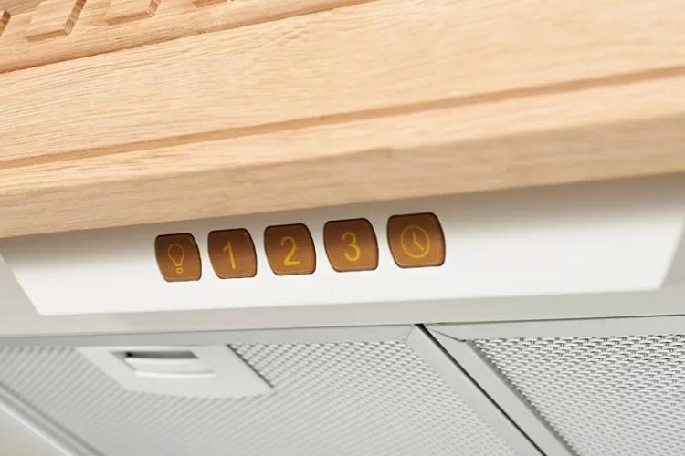 Наиболее распространенным элементом управления являются кнопки — ими оснащаются устройства с механическим управлением. Кнопки можно увидеть у вытяжек всех типов, от простых встраиваемых до дизайнерских подвесных, островных или наклонных. Количество кнопок зависит от набора функций: в простейшем случае достаточно всего трех кнопок — двух для переключения скоростей и одной для включения освещения. Как правило, они имеют круглую форму, однако производители предлагают устройства с квадратными и даже треугольными кнопками. В больших купольных вытяжках кнопки могут изготавливаться из меди, бронзы или латуни, а моделях современного дизайна — оснащаться подсветкой.