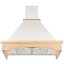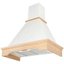Особенно разнообразен ассортимент классических вытяжек с окантовкой из натурального дерева. Корпус таких моделей выполняется в спокойном белом или бежевом цвете, хорошо сочетающемся с оттенками натурального дерева — мореного дуба, бука, вишни или ореха. Нередко для окантовки используется окрашенное дерево в тон с цветом купола: особенно популярны оттенки ванили, бежевый и кремовый. Иногда дерево специально оставляют неокрашенным, чтобы пользователь мог подобрать оттенок самостоятельно.