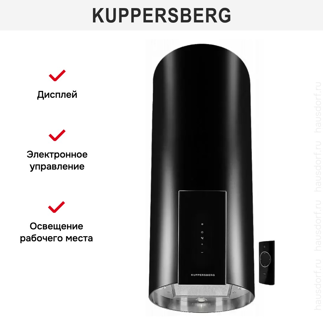 Данная вытяжка крепится к потолку — обычно над кухонным островом, где расположена рабочая зона. Обратите внимание на цветовые сочетания модели Kuppersberg MOTUBA B, чтобы органично вписать ее в свою квартиру. Оттенок корпуса: черный. Благодаря лампочкам, которые расположены на нем, можно освещать плиту и столешницу рядом, чтобы готовить было еще проще и приятнее.