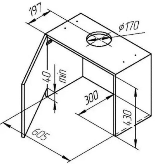 У многих встраиваемых моделей глубина может регулироваться, а рабочая всасывающая поверхность — увеличиваться благодаря выдвижному козырьку, но габариты корпуса такой вытяжки должны соответствовать размерам подвесного шкафа. Выбирать основные размеры вытяжки с соблюдением всех требований эффективности и безопасности работы следует также не в ущерб общему дизайну помещения.