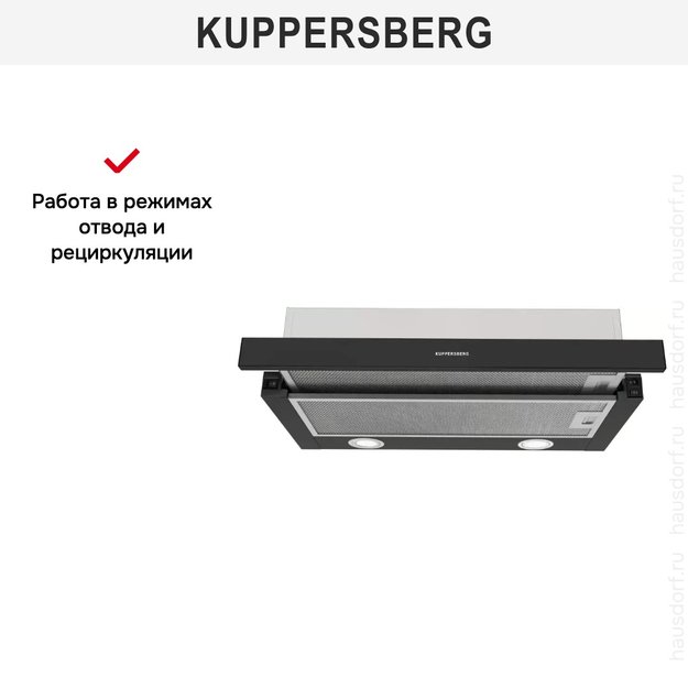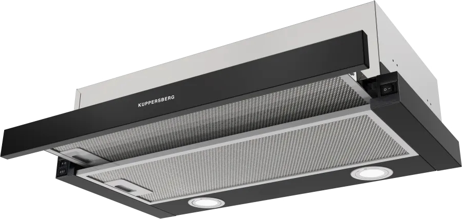 Встраиваемая вытяжка — выбор тех, кто хочет максимально задекорировать технику, или владельцев маленькой кухни. Тип встраивания: в шкаф. Обратите внимание на цветовые сочетания модели Kuppersberg SLIMDUAL 60 B, чтобы органично вписать ее в свою квартиру. Оттенок корпуса: черный. Благодаря лампочкам, которые расположены на нем, можно освещать плиту и столешницу рядом, чтобы готовить было еще проще и приятнее. Фишка этой техники — выдвижная панель.