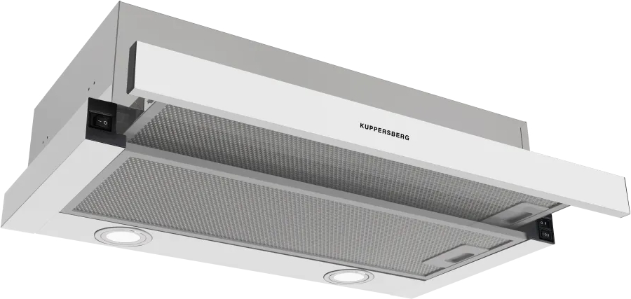 Встраиваемая вытяжка — выбор тех, кто хочет максимально задекорировать технику, или владельцев маленькой кухни. Тип встраивания: в шкаф. Обратите внимание на цветовые сочетания модели Kuppersberg SLIMDUAL 60 W, чтобы органично вписать ее в свою квартиру. Оттенок корпуса: белый. Благодаря лампочкам, которые расположены на нем, можно освещать плиту и столешницу рядом, чтобы готовить было еще проще и приятнее. Фишка этой техники — выдвижная панель.