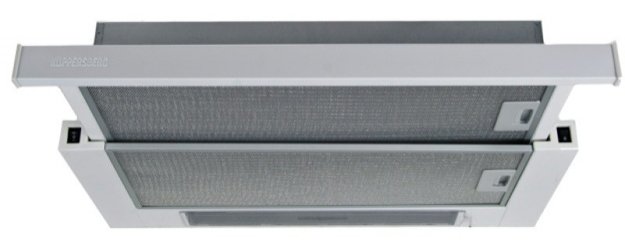 Можно выделить два основных вида вытяжек с выдвижной панелью. В вытяжках, встраиваемых в подвесной шкаф, выдвижная панель необходима, так как размеры таких устройств определяются размерами самого шкафа. В закрытом состоянии глубина вытяжки может быть меньше глубины варочной поверхности. Телескопическая выдвижная панель, которая устанавливается преимущественно в устройствах, работающих в режиме отвода, гарантирует полный захват воздуха, загрязненного каплями жира, частицами сажи, испарениями. Панель можно выдвинуть как нажатием на кнопку, так и потянув за ее переднюю часть. В некоторых моделях при подобном выдвижении одновременно включается подсветка. Когда же панель убрана, вытяжка становится практически незаметной — такой вариант лучше всего подходит для небольшой кухни.