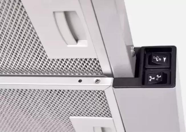 Встраиваемые и простые настенные модели, как правило, оснащаются боковой панелью управления, состоящей из нескольких кнопок. Их количество зависит от числа скоростей, наличия интенсивного режима и встроенного освещения. Боковое расположение панели управления делает вытяжку еще более незаметной.