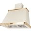 Особенно разнообразен ассортимент классических вытяжек с окантовкой из натурального дерева. Корпус таких моделей выполняется в спокойном белом или бежевом цвете, хорошо сочетающемся с оттенками натурального дерева — мореного дуба, бука, вишни или ореха. Нередко для окантовки используется окрашенное дерево в тон с цветом купола: особенно популярны оттенки ванили, бежевый и кремовый. Иногда дерево специально оставляют неокрашенным, чтобы пользователь мог подобрать оттенок самостоятельно.