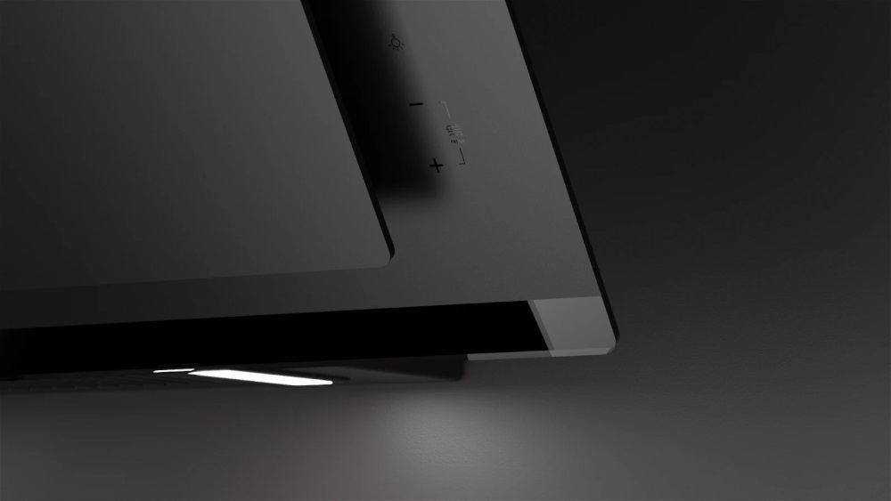 Воздух всасывается по периметру вытяжки через узкие щели. Он собирается в потоки, которые направляются прямо к фильтрам внутри, не рассеивается на кухне. Благодаря этой технологией вытяжку можно сделать компактнее и энергоэффективнее.
