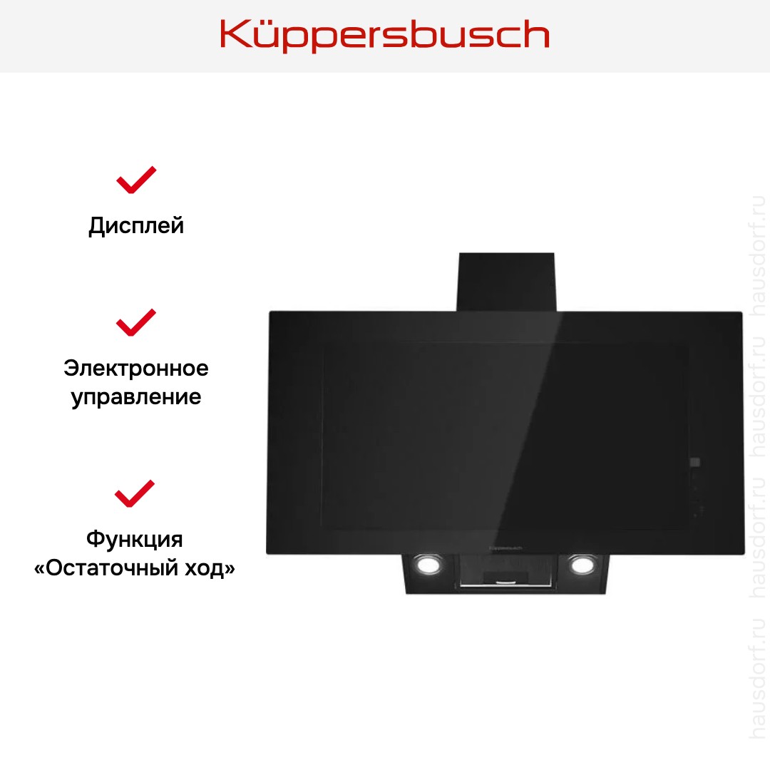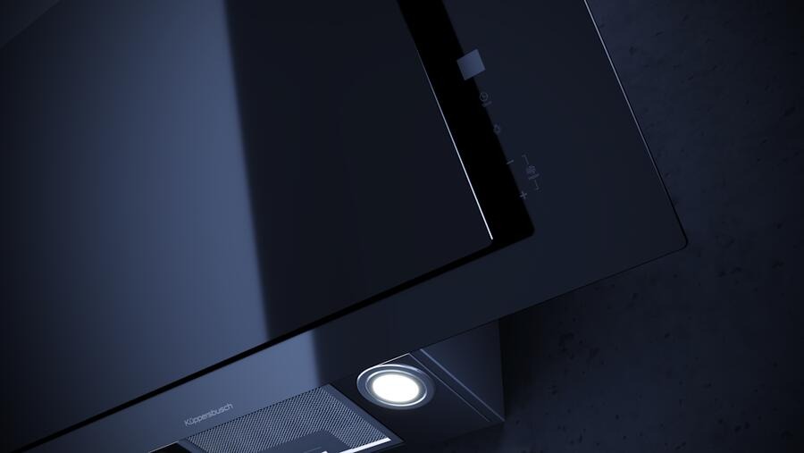 Данная вытяжка крепится на стену и имеет наклонную фронтальную панель, что придает изюминку дизайну и позволяет сохранить свободное рабочее пространство внизу. Обратите внимание на цветовые сочетания модели Kuppersbusch DW 9250.0 S, чтобы органично вписать ее в свою квартиру. Оттенок корпуса: черный. Благодаря лампочкам, которые расположены на нем, можно освещать плиту и столешницу рядом, чтобы готовить было еще проще и приятнее.