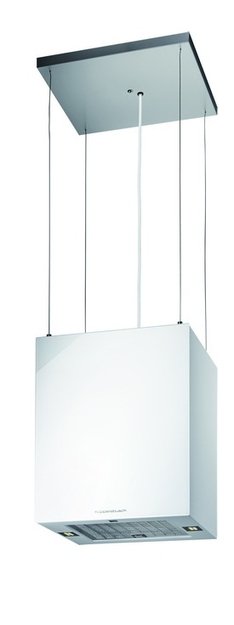 Данная вытяжка крепится к потолку — обычно над кухонным островом, где расположена рабочая зона. Обратите внимание на цветовые сочетания модели Kuppersbusch IKDU 3900.2 W, чтобы органично вписать ее в свою квартиру. Оттенок корпуса: белое стекло. Благодаря лампочкам, которые расположены на нем, можно освещать плиту и столешницу рядом, чтобы готовить было еще проще и приятнее.