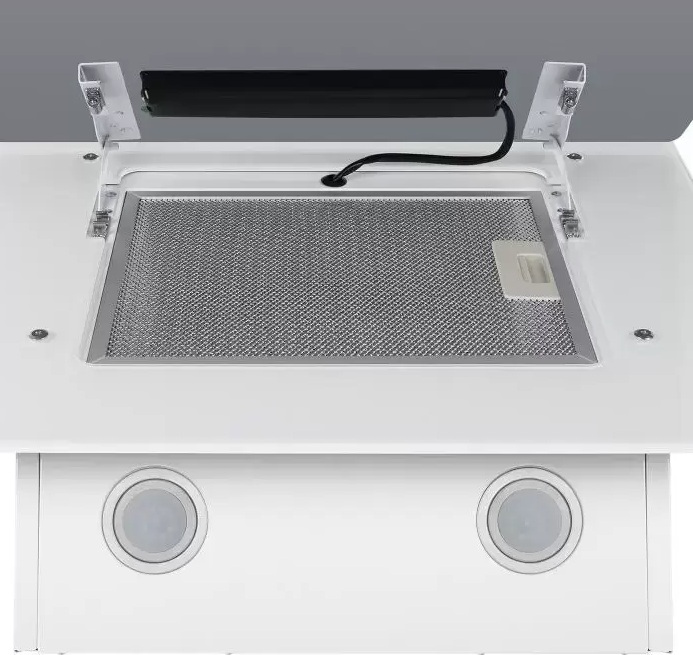 Встроенное освещение — функция, которая присутствует практически во всех современных вытяжках. Центрального освещения часто недостаточно для хорошего обзора рабочей зоны, особенно если над ней установлен подвесной шкаф. Интегрированные в вытяжку лампы позволяют готовить с комфортом, не напрягая зрение, их можно включать независимо от использования самой вытяжки.