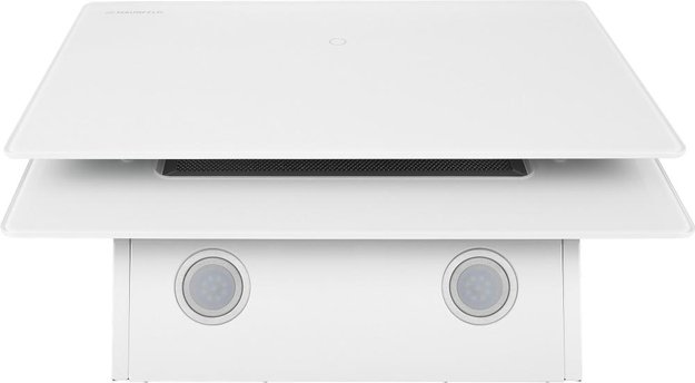 Воздух всасывается по периметру вытяжки через узкие щели. Он собирается в потоки, которые направляются прямо к фильтрам внутри, не рассеивается на кухне. Благодаря этой технологией вытяжку можно сделать компактнее и энергоэффективнее.