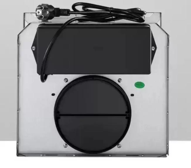 В рабочую поверхность встроены две светодиодные лампы мощностью 2 Вт. Они не нагреваются и хорошо освещают зону приготовления пищи. Прибор эффективно очищает воздух от жира, копоти и неприятных запахов. Он предназначен для помещений площадью до 30 квадратных метров. В комплект входит гофра для подключения к вентиляции. Модель может работать в двух режимах: отвод и рециркуляция. В первом случае воздух удаляется в вентиляцию, во втором — проходит через фильтры и возвращается в комнату. Два жироулавливающих фильтра сделаны из алюминия. Производитель рекомендует мыть их раз в неделю. Модель экономична и относится к классу энергоэффективности В.
