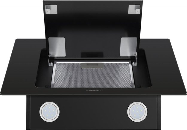 Модель работает в режиме отвода и циркуляции воздуха. Она присоединяется к вентиляционному каналу напрямую или с помощью гофры. Крепится на стену. Черный металлический корпус и защитный экран из закаленного стекла невосприимчивы к коррозии, а еще их очень легко отмыть от любых загрязнений. В нижней части корпуса располагаются две яркие лампы, которые обеспечивают качественную подсветку рабочей поверхности. Менять их придется исключительно редко, так как они рассчитаны на несколько лет работы.