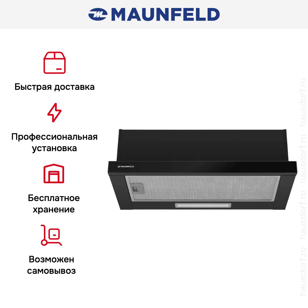 Встраиваемая вытяжка — выбор тех, кто хочет максимально задекорировать технику, или владельцев маленькой кухни. Тип встраивания: в шкаф. Обратите внимание на цветовые сочетания модели Maunfeld Clyde 50 Glass Black, чтобы органично вписать ее в свою квартиру. Оттенок корпуса: черный. Фишка этой техники — выдвижная панель.