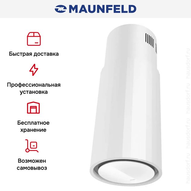 Данная вытяжка крепится к потолку — обычно над кухонным островом, где расположена рабочая зона. Обратите внимание на цветовые сочетания модели Maunfeld Adelaide 39 Isla White, чтобы органично вписать ее в свою квартиру. Оттенок корпуса: белый.