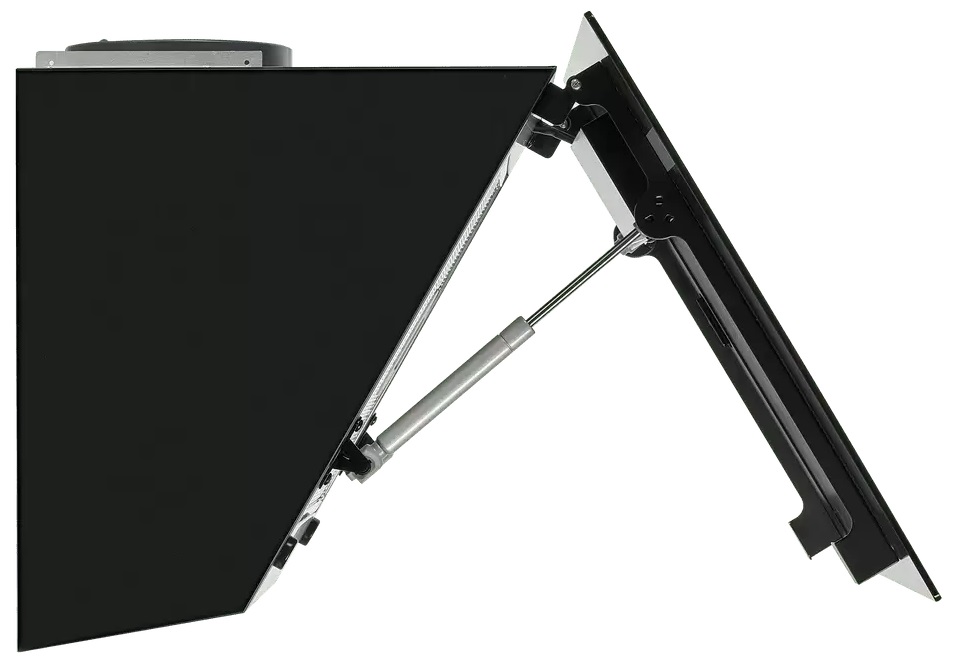 Вытяжки с наклонной фронтальной панелью позволяют освободить пространство над варочной панелью, при этом мощность забора воздуха не страдает от конфигурации модели. Такими вытяжками удобно управлять, так как кнопки обычно находятся спереди, доступ к ним максимально облегчен. Зачастую есть всасывание по периметру.