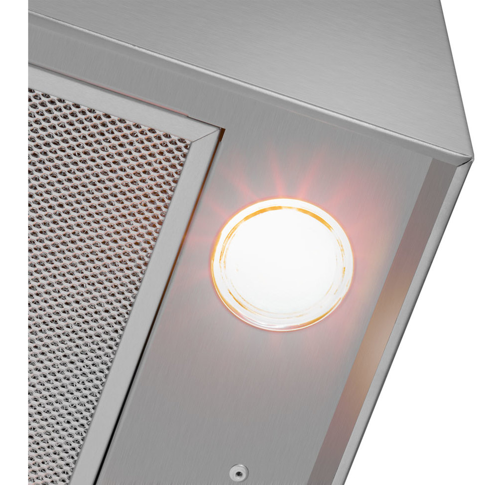 Встроенное освещение — функция, которая присутствует практически во всех современных вытяжках. Центрального освещения часто недостаточно для хорошего обзора рабочей зоны, особенно если над ней установлен подвесной шкаф. Интегрированные в вытяжку лампы позволяют готовить с комфортом, не напрягая зрение, их можно включать независимо от использования самой вытяжки.