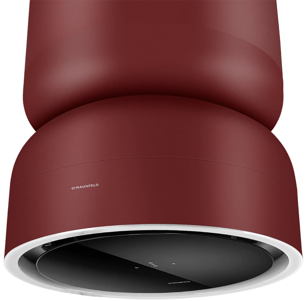 Данная вытяжка крепится к потолку — обычно над кухонным островом, где расположена рабочая зона. Обратите внимание на цветовые сочетания модели Maunfeld FESTIVAL 390 Isla Burgundy, чтобы органично вписать ее в свою квартиру. Оттенок корпуса: бургундия. Благодаря лампочкам, которые расположены на нем, можно освещать плиту и столешницу рядом, чтобы готовить было еще проще и приятнее.