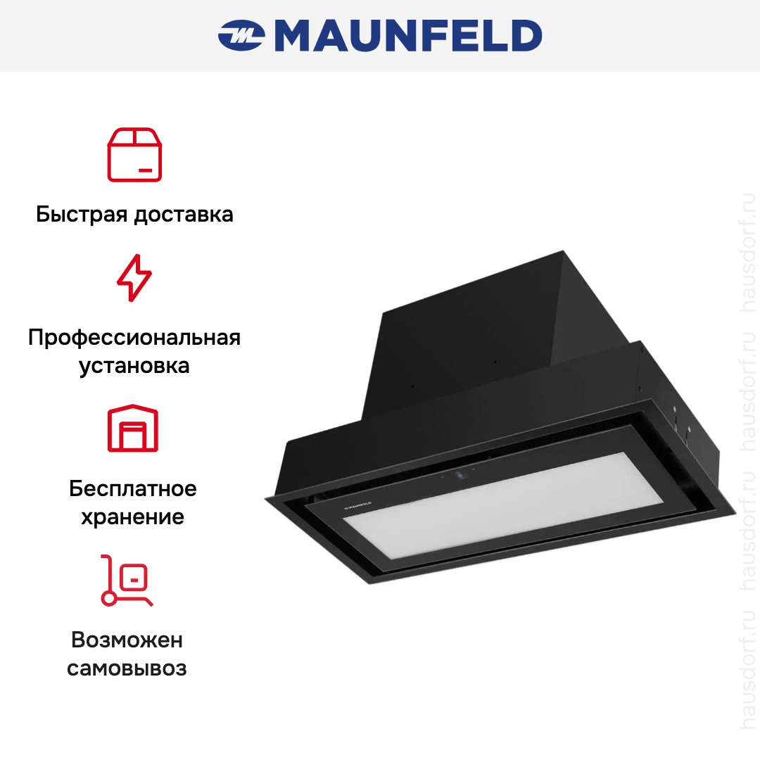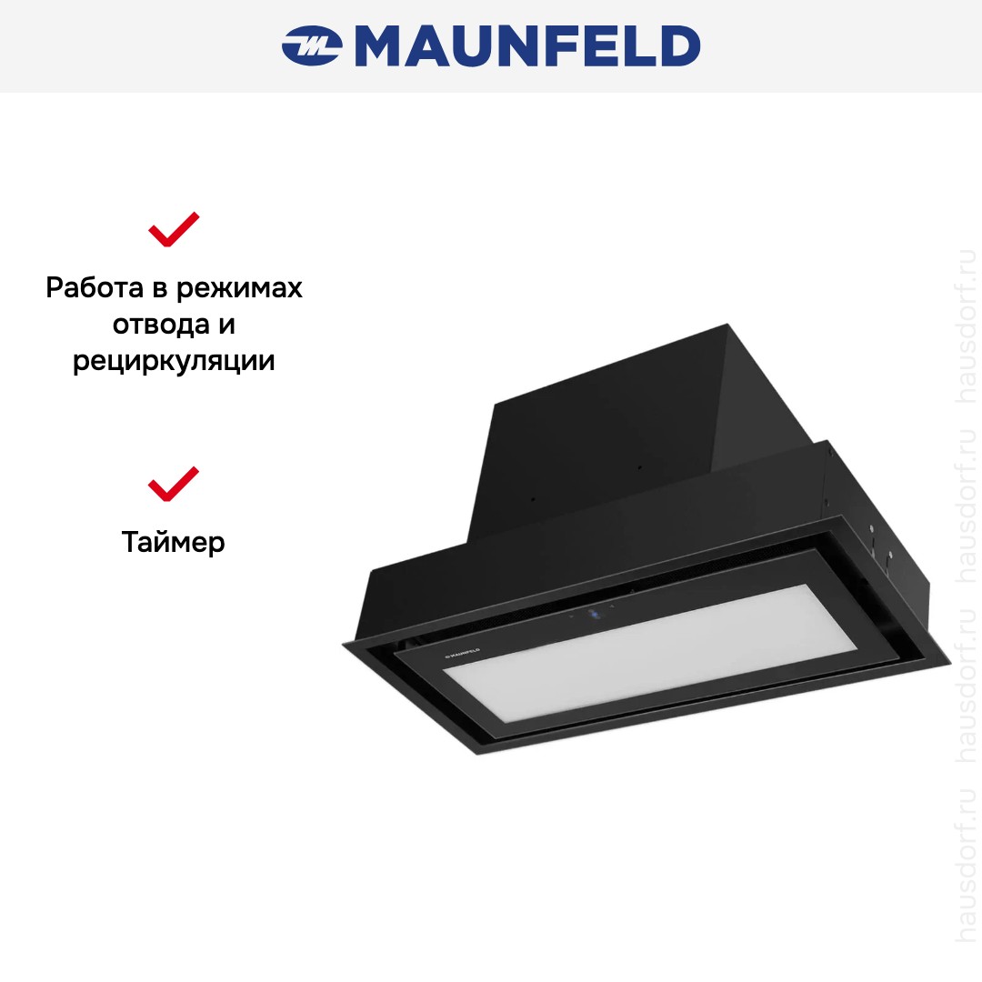 Встраиваемая вытяжка — выбор тех, кто хочет максимально задекорировать технику, или владельцев маленькой кухни. Тип встраивания: в шкаф. Обратите внимание на цветовые сочетания модели Maunfeld MZR 74 Lux Вlack, чтобы органично вписать ее в свою квартиру. Оттенок корпуса: черный. Благодаря лампочкам, которые расположены на нем, можно освещать плиту и столешницу рядом, чтобы готовить было еще проще и приятнее.