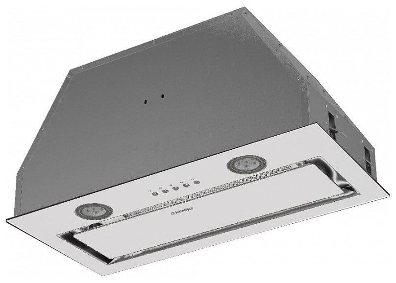 Встраиваемая вытяжка MAUNFELD TRAPEZE 602IG выполнена в белом цвете и предназначена для установки в кухонный шкаф. Аидимой остается только нижняя часть, которая отличается лаконичным современным дизайном. К особенностям этой модели кухонной вытяжки относятся: