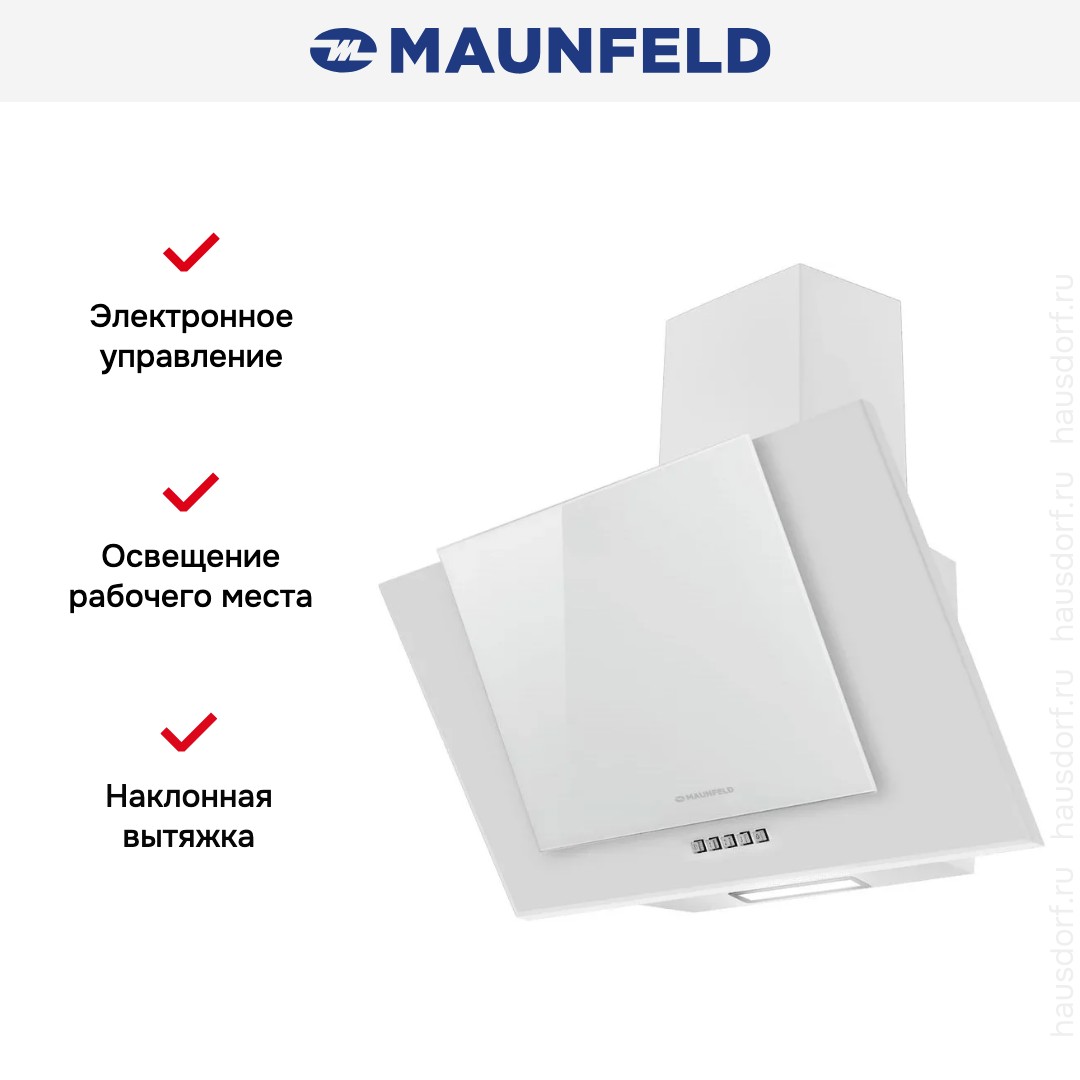 Данная вытяжка крепится на стену и имеет наклонную фронтальную панель, что придает изюминку дизайну и позволяет сохранить свободное рабочее пространство внизу. Обратите внимание на цветовые сочетания модели Maunfeld Wind 60 A White, чтобы органично вписать ее в свою квартиру. Оттенок корпуса: белый. Благодаря лампочкам, которые расположены на нем, можно освещать плиту и столешницу рядом, чтобы готовить было еще проще и приятнее.