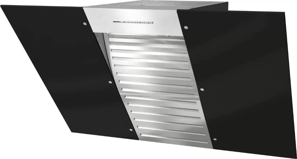 Стильная наклонная вытяжка Miele с электронным управлением. Три скорости работы и интенсивная ступень позволяют быстро и качественно очистить воздух от примесей и гари.