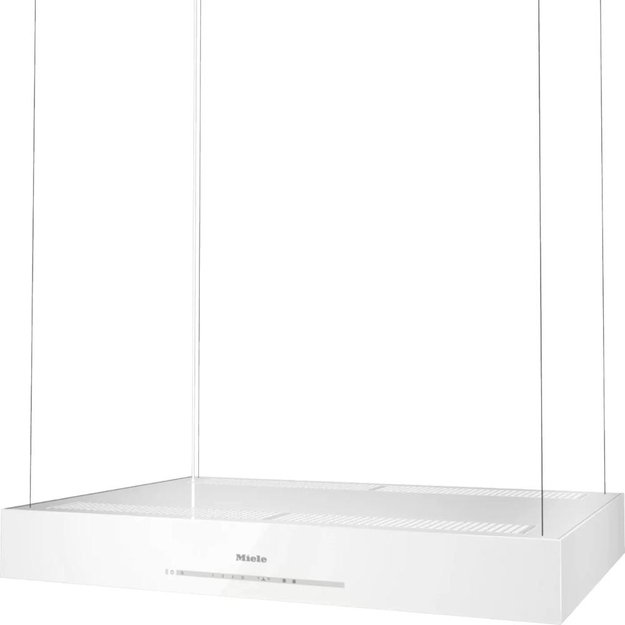 Элегантная вытяжка Miele в белом цвете. В модели предусмотрено три скорости работы и интенсивный режим. Светодиодное освещение обеспечивает равномерное освещение рабочей зоны. Островная вытяжка производительностью 600 м3/час и шириной 100 см крепится к потолку при помощи тросов. Интенсивный режим отключается автоматически, когда загрязненность воздуха снижается. Модель оснащена съемным стальным жироулавливающим фильтром, необходимо приобрести также угольный фильтр.