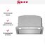 Модель выглядит стильно и достойно за счет пластины из нержавеющей стали, установленной поверх фильтров. Электронная панель управления вынесена на фронтальную часть. При помощи клавиш можно выбрать низкую, средняя или высокую скорость всасывания. Интенсивный режим отключается автоматически через 30 минут. Интервальный режим автоматически включается один раз в час на 10 минут в течение суток на минимальной мощности. Две светодиодные лампы ярко освещают рабочую зону. При необходимости яркость и насыщенность освещения можно регулировать при помощи функции Dimm.