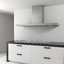 Вытяжка выглядит сдержанно и цельно: корпус из нержавеющей стали образует ровную линию под дном шкафа, без лишних выступов. Пропорции выверены — 35.4×86.5×29 см — так что видимой остается лишь лицевая кромка стального цвета, гармонирующая с фурнитурой и техникой из металла.