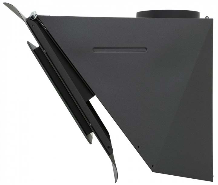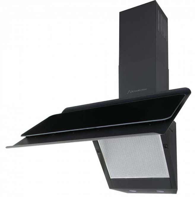 Наклонные модели — еще один вариант для небольшой кухни. Они размещаются на стене, но при высокой производительности не требуют много места. Их особенностью считается пониженный уровень шума и управление при помощи пульта ДУ. Эта категория вытяжек отличается большим разнообразием размеров, дизайна, цветов.
