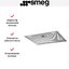 Встраиваемая вытяжка — выбор тех, кто хочет максимально задекорировать технику, или владельцев маленькой кухни. Тип встраивания: в шкаф. Обратите внимание на цветовые сочетания модели Smeg KSG52HPE, чтобы органично вписать ее в свою квартиру. Оттенок корпуса: нержавеющая сталь. Благодаря лампочкам, которые расположены на нем, можно освещать плиту и столешницу рядом, чтобы готовить было еще проще и приятнее.