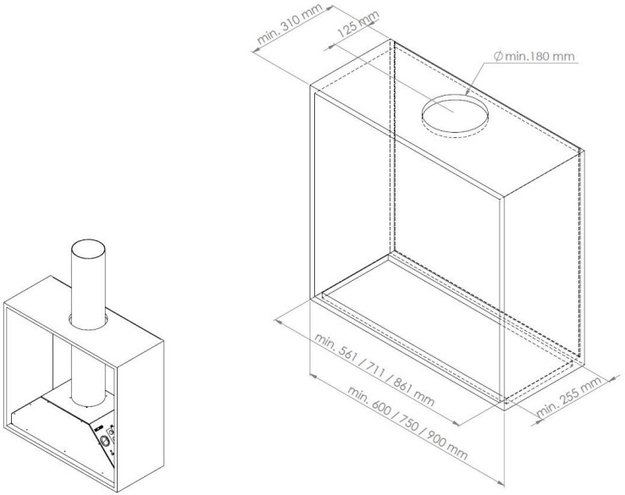 - Габариты ниши для встраивания (ВхШхГ): 86.1х25.5 см